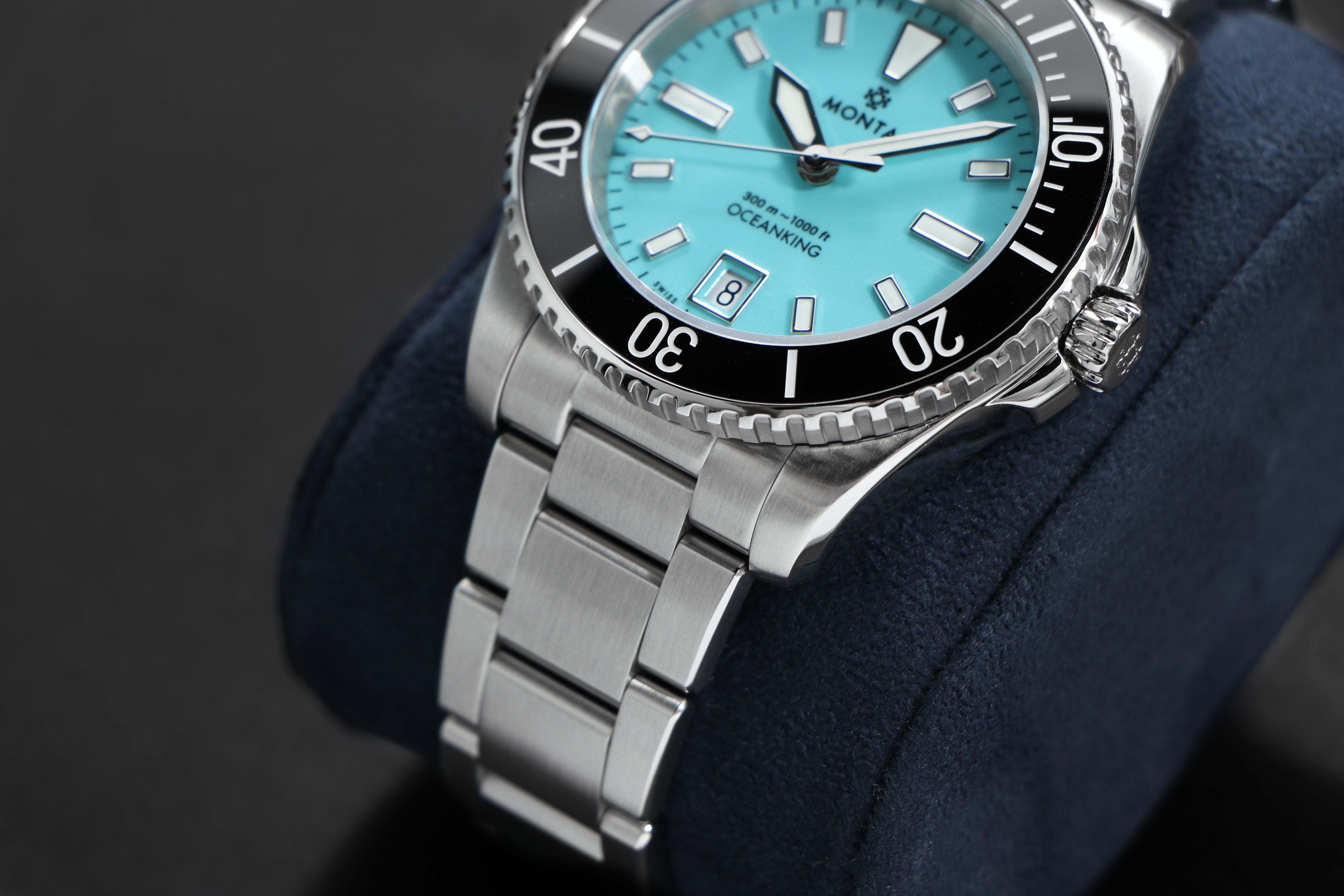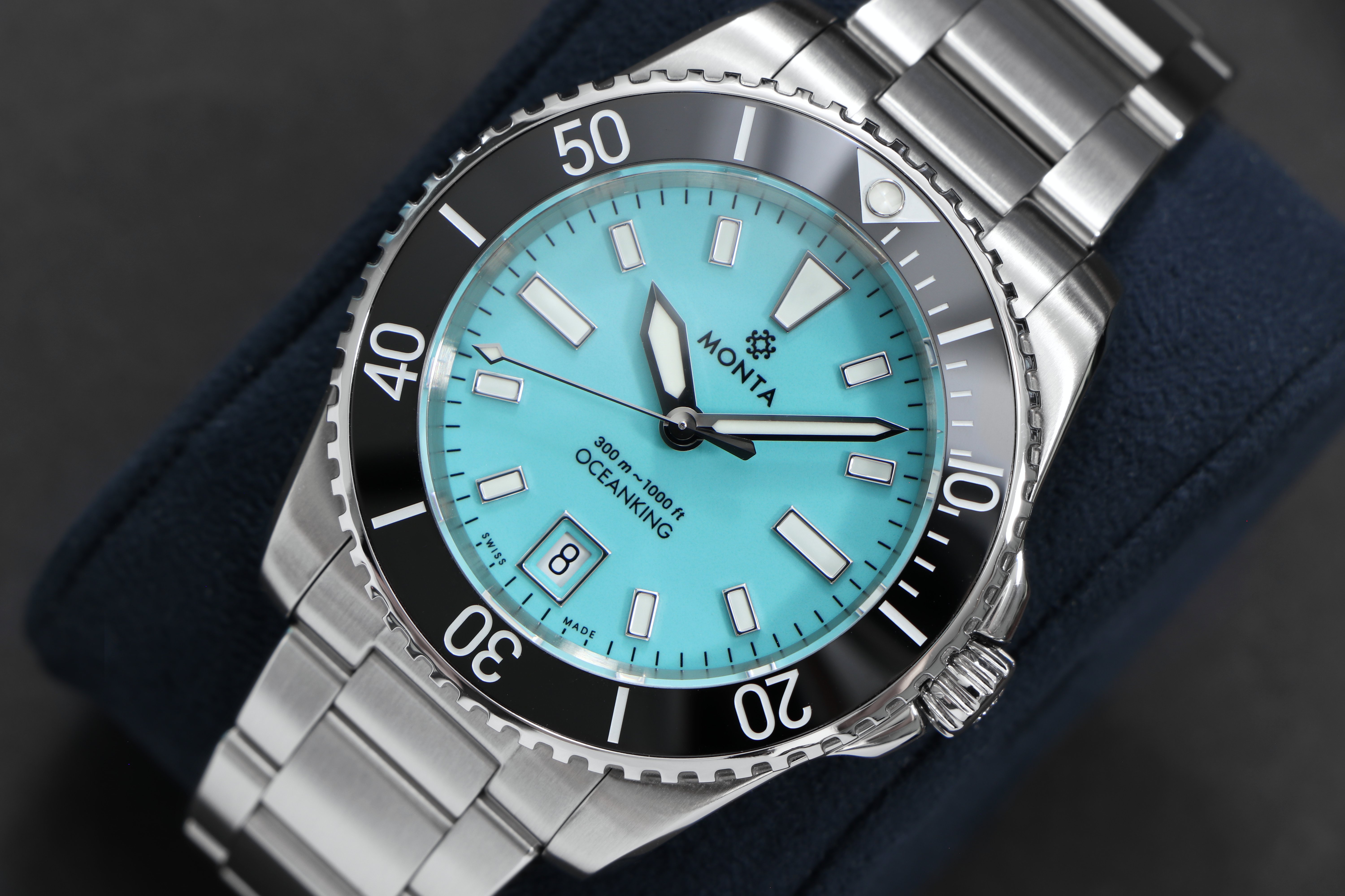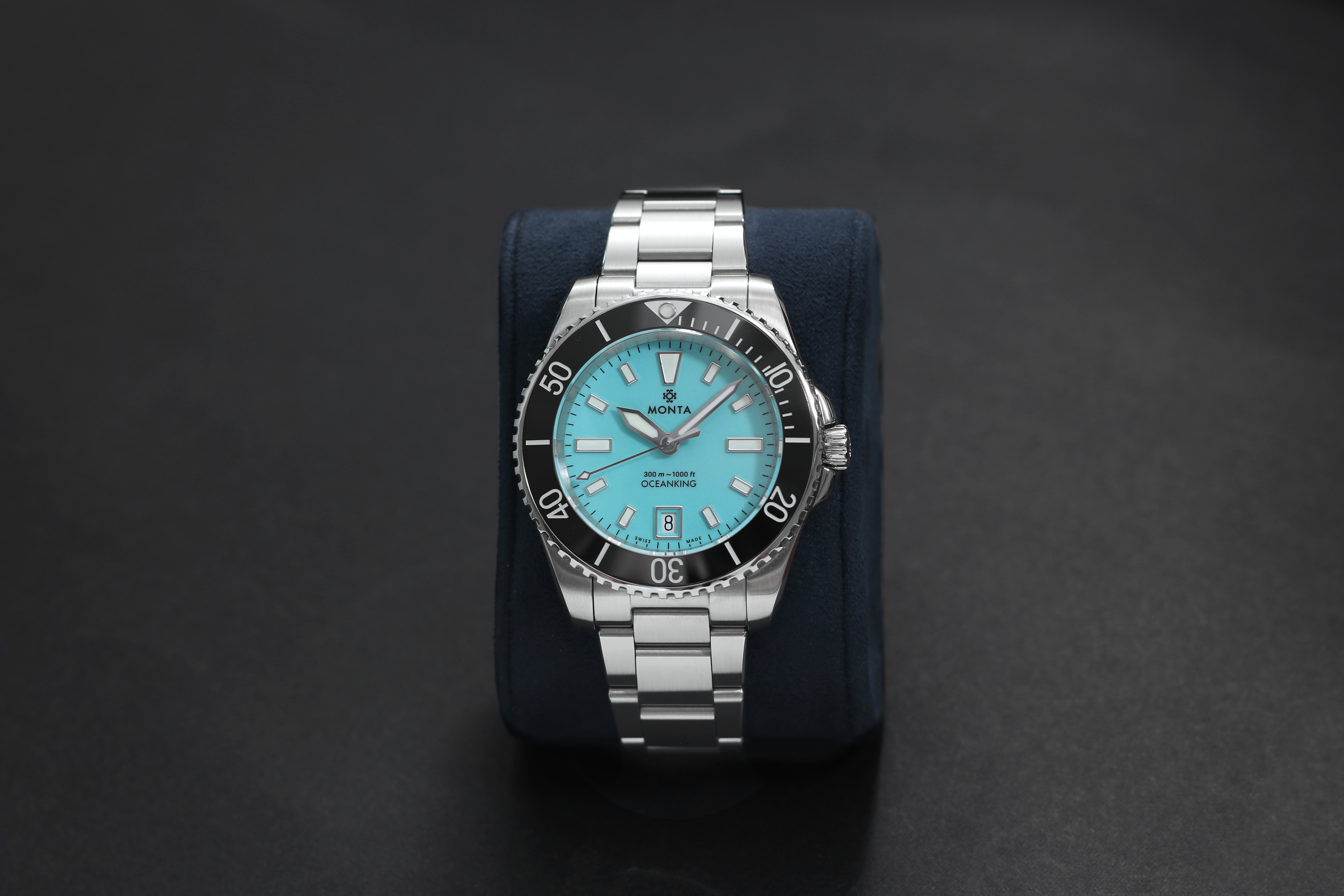 The Oceanking uses the MONTA Caliber M-22 self-winding, mechanical movement with bidirectional rotor.  It is manufactured, assembled, and tested in Switzerland.