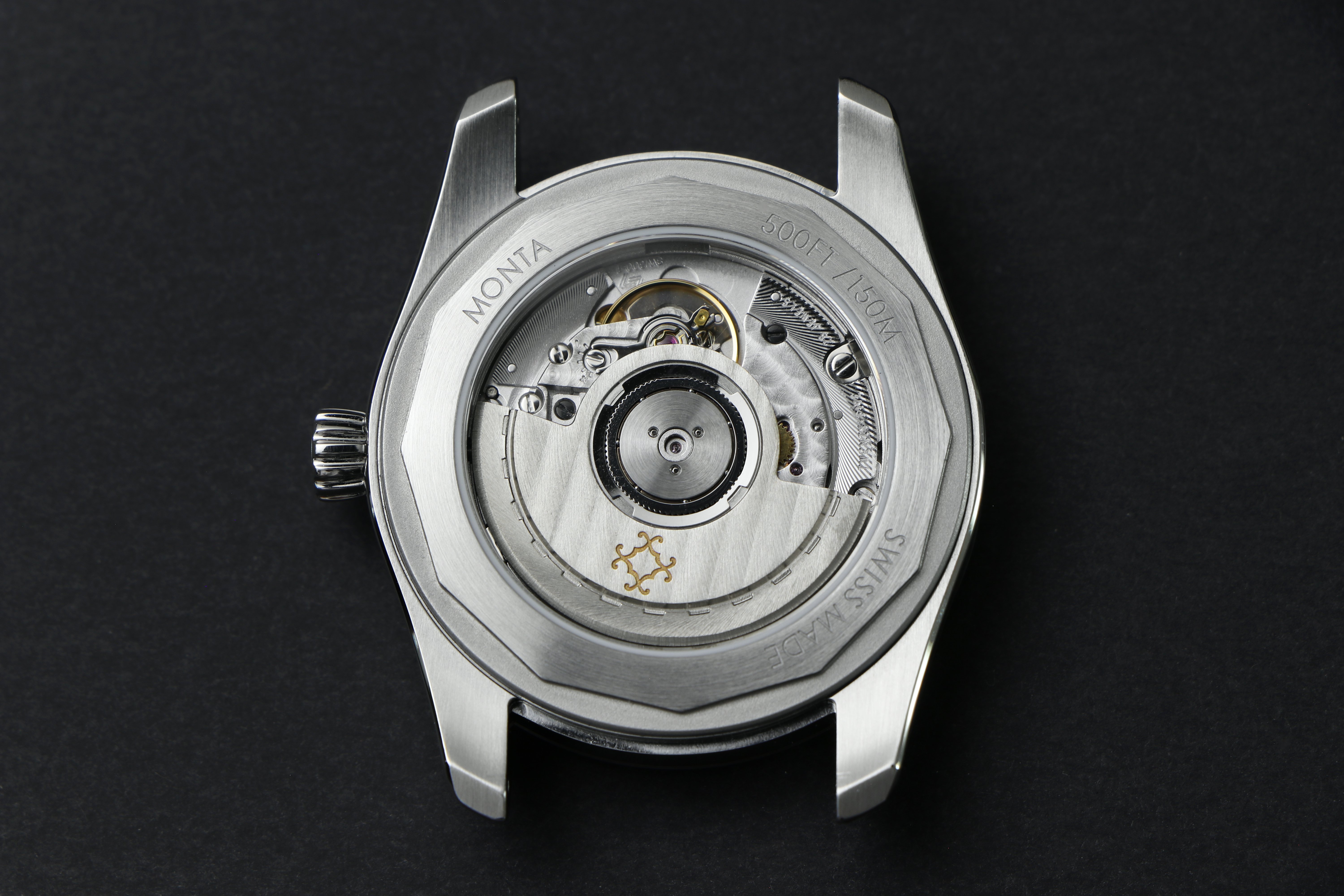 The Noble uses the MONTA Caliber M-22 self-winding, mechanical movement with bidirectional rotor. It is manufactured, assembled, and tested in Switzerland.
